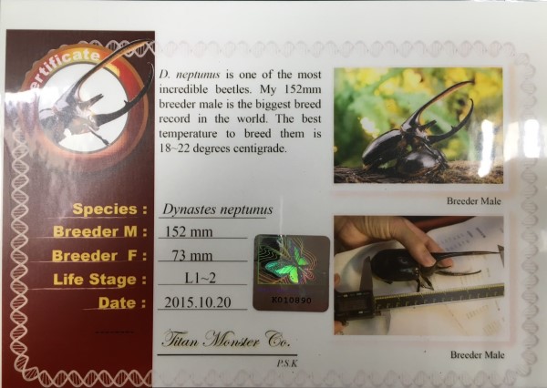 海神大兜(DN)PSK152mm血統-幼蟲(每隻幼蟲均附血統書)