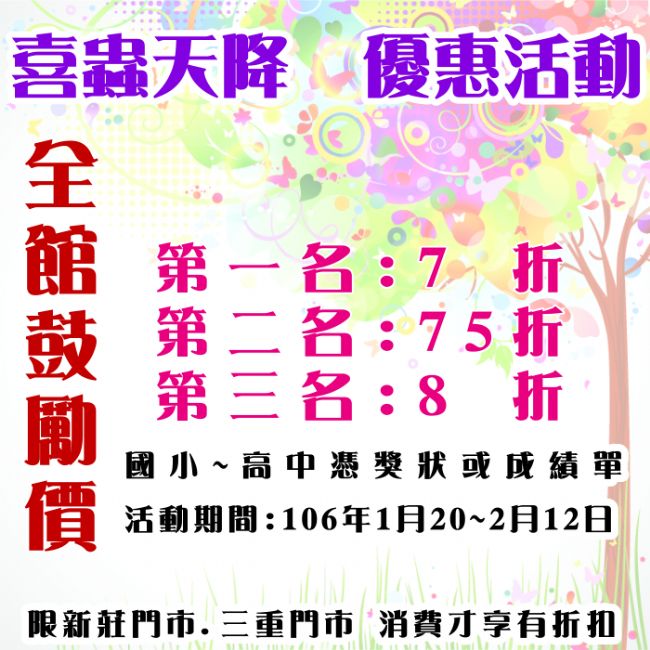 喜蟲天降 憑獎狀優惠7折活動又來了