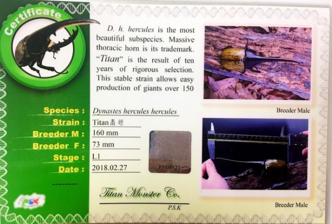長戟大兜(DHH)PSK泰坦160mm血統-幼蟲(每隻幼蟲均附血統書)