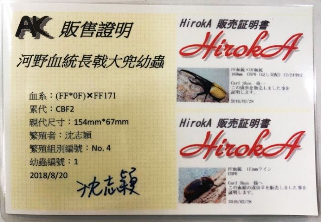 長戟大兜赫克力士亞種-公154mm+母蟲67mm(河野血統,附證)