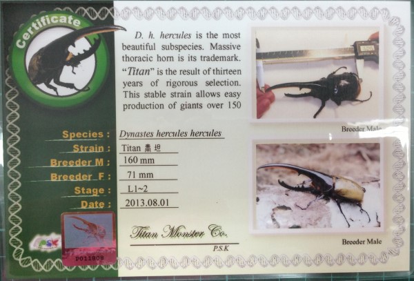 長戟大兜(DHH)PSK泰坦160mm血統-幼蟲(每隻幼蟲均附血統書)
