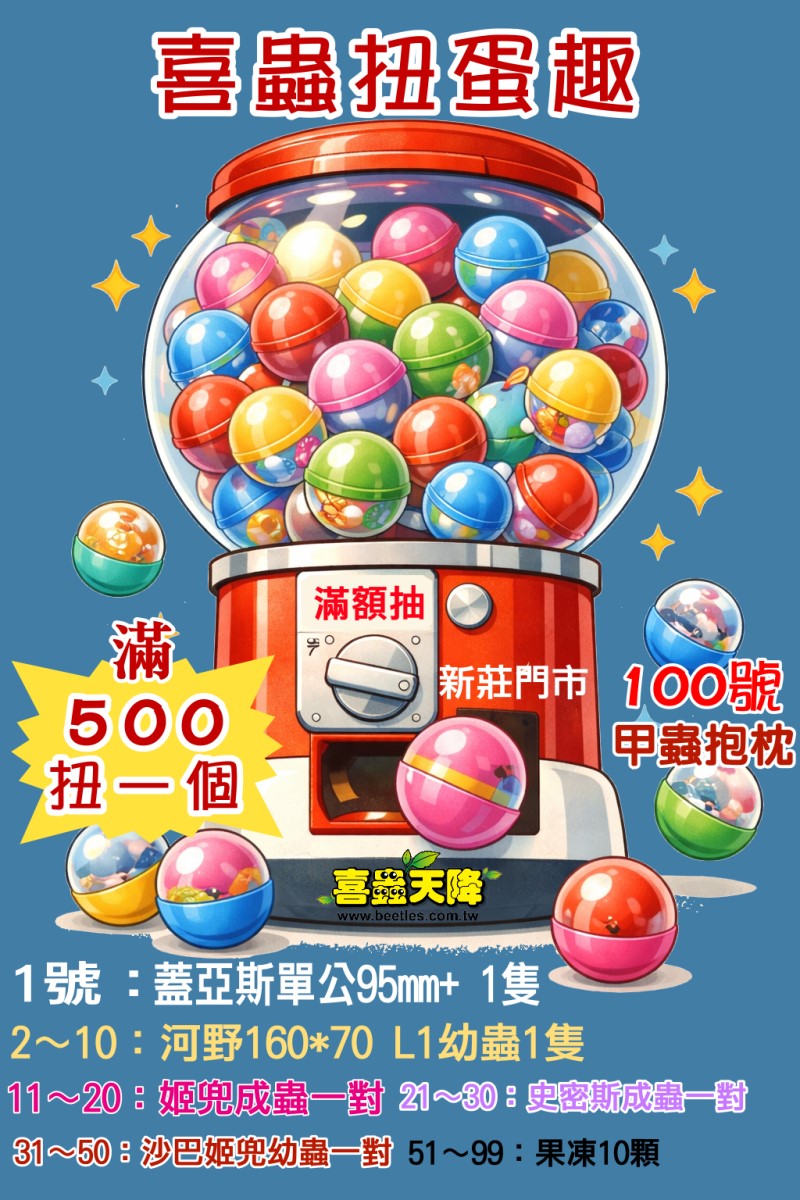 來去喜蟲扭蛋趣∼消費滿額(含)500元,可扭轉一次(新莊門市限定)