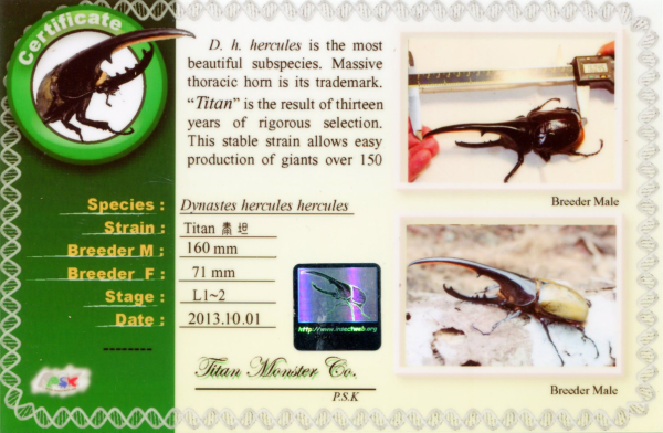 長戟大兜(DHH)PSK泰坦160mm血統-幼蟲(每隻幼蟲均附血統書)