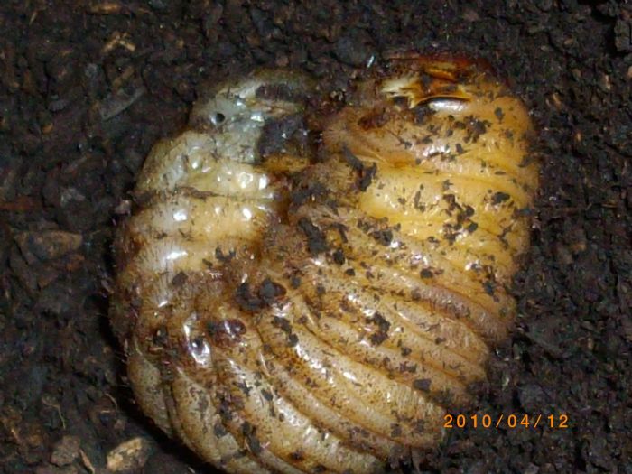 我養的獨角仙幼蟲爬出土沒做蛹室我用手挖一個洞