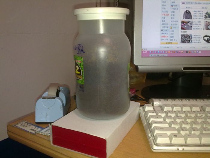木屑高度差不多在瓶身的紅字那裡