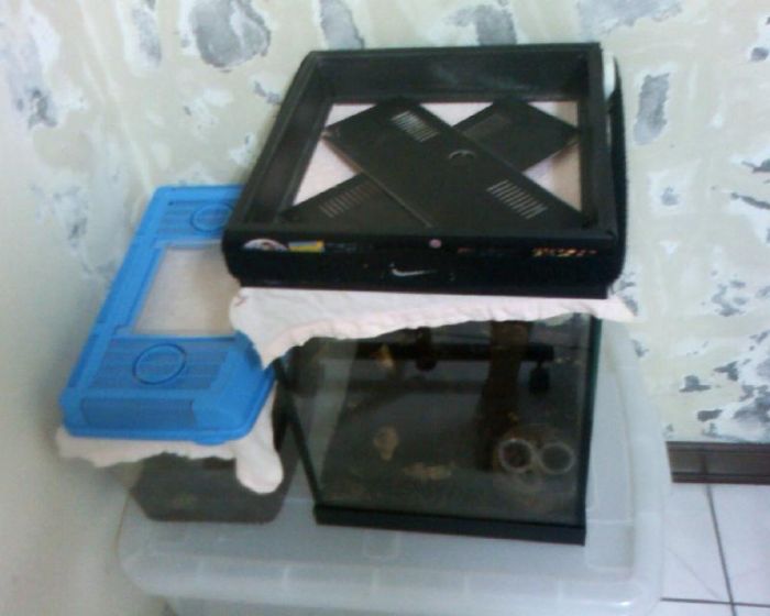 1.像圖片那樣 左邊的我蓋子下面又加布 這樣它裡面的空氣夠嗎? 2.右邊的是用布在上面 四周用東西壓著 那兩塊板子是怕他把布刺破 跑出來 才裝的 這樣它裡面的空氣夠嗎? 3.還有什麼地方需要改善嗎? PS.都是用 毛巾布 乾的 抱歉我是新手 謝謝你替我解答 |