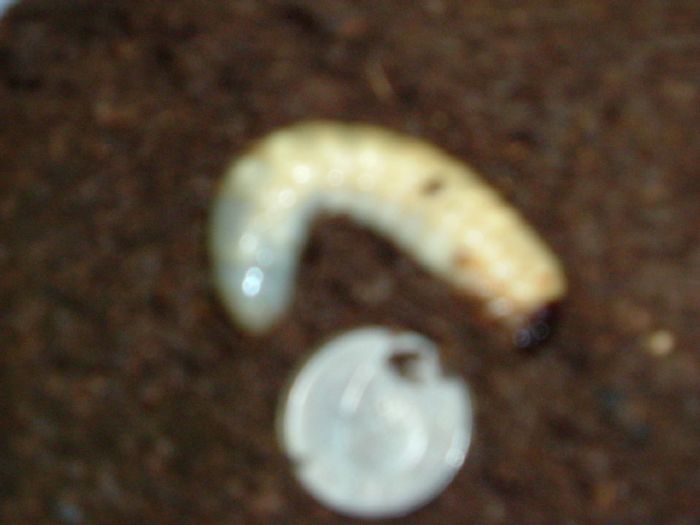 今天換土時發現南洋大兜長大許多 大概是剛脫皮 再挖他的時候 看到了一個類似蛹室的空間 但是以他現再來講 應該不可能做蛹室吧 耳且它的身體也黃黃的