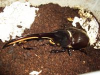 | 犀牛兜繁殖方法【產卵箱】:K300飼育箱。【溫度】:最佳溫度23∼26℃。【素材】:喜蟲天降活菌兜土(大包) + 育成紅兜土(小包)。【產卵環境】:佈置產卵環境,全部以手壓緊約15公分,不分緊實層及鬆....[more] |