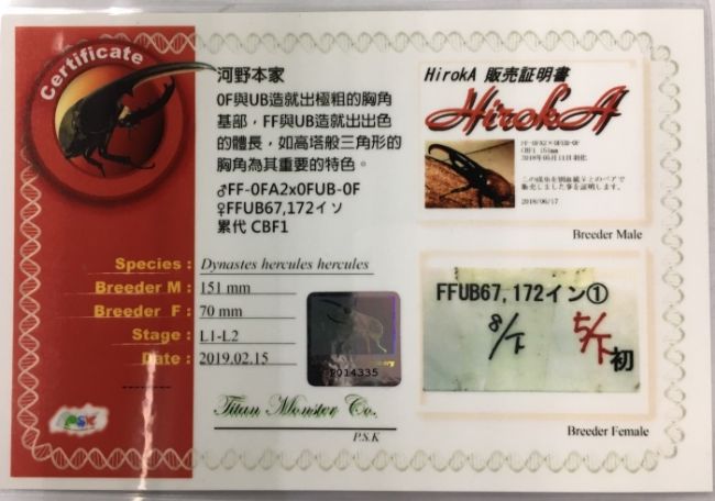長戟大兜赫克力士亞種DHH 種公150mm 母70mm(河野本家血統-附證)