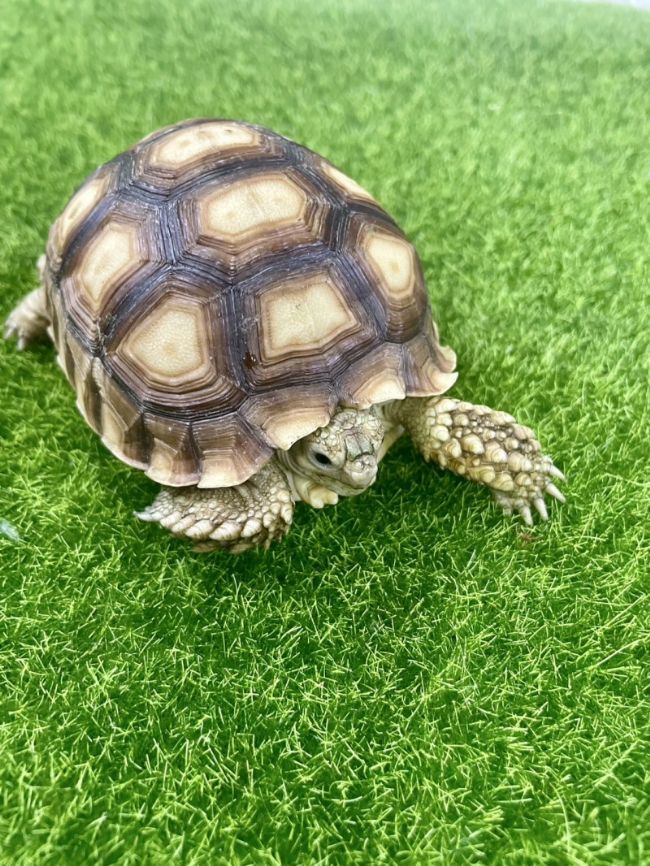 新莊店新上架~蘇卡達象龜-腹甲9.8cm,親手餵養已久的健康大寶寶,互動性滿滿!