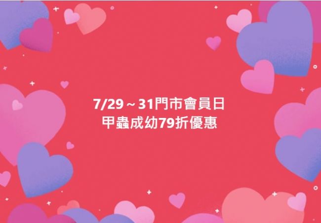 7/29~31門市會員日,活體79折優惠。