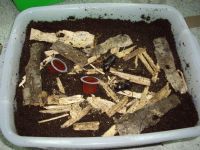 【表層環境】:需放置多一些防止成蟲翻倒的木片或產卵木剩下之樹皮。